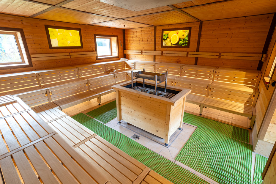 Im Innenbereich bieten unsere 8 Themensaunen, unser osmanischer Hamam sowie unsere Dampfbäder mit verschiedenen Temperaturen und Düften verheißungsvolle Abwechslung und Saunagenuss auf höchstem Niveau. Vom echten Profi Saunafreund bis zum gelegentlichen Saunagenießer kommt bei uns jeder Gast auf seine Kosten. Erfreuen Sie sich an einem extra Vitamin C Kick in unserer Zitronen-Sauna oder spüren Sie die entspannende Wirkung in unserer Hildegard von Bingen Sauna.